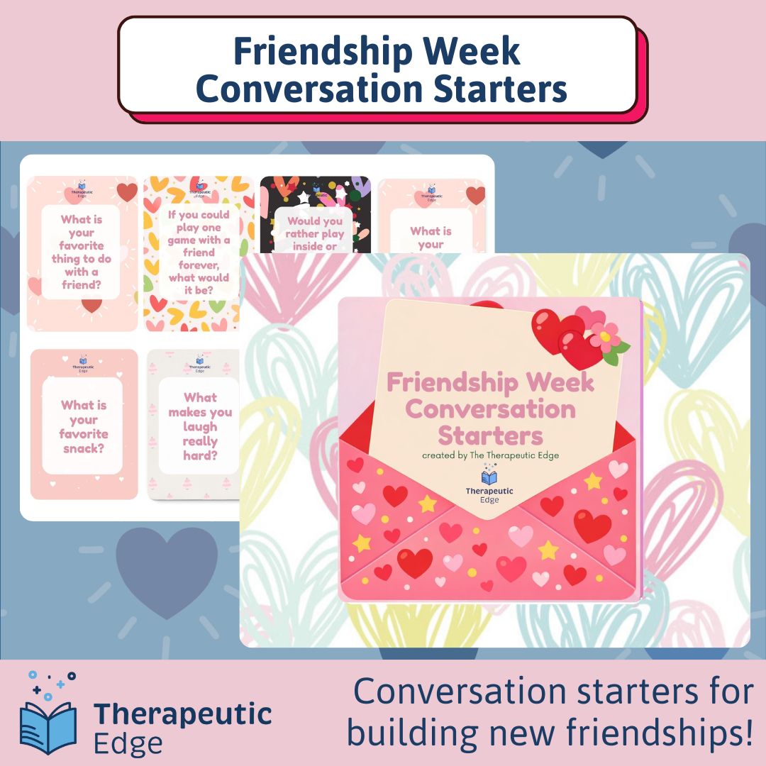 These conversation starter cards are designed to help conversation and discussion flow for new friendship! Perfect for icebreakers in your home, clinic, or classroom! Kids can also keep these cards with them to encourage conversations with friends and family.